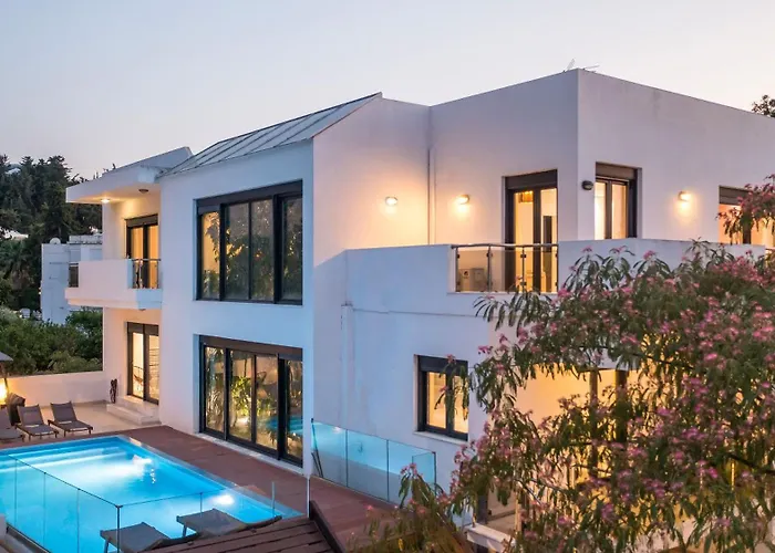 Die Melia verfügt über eine sonnige Terrasse mit Blick aufs Meer und ist 20 Autominuten vom Flughafen Rhodos 'Diagoras' entfernt gelegen. Diese Villa bietet einen Außenpool sowie Tischtennis für aktive Gäste.